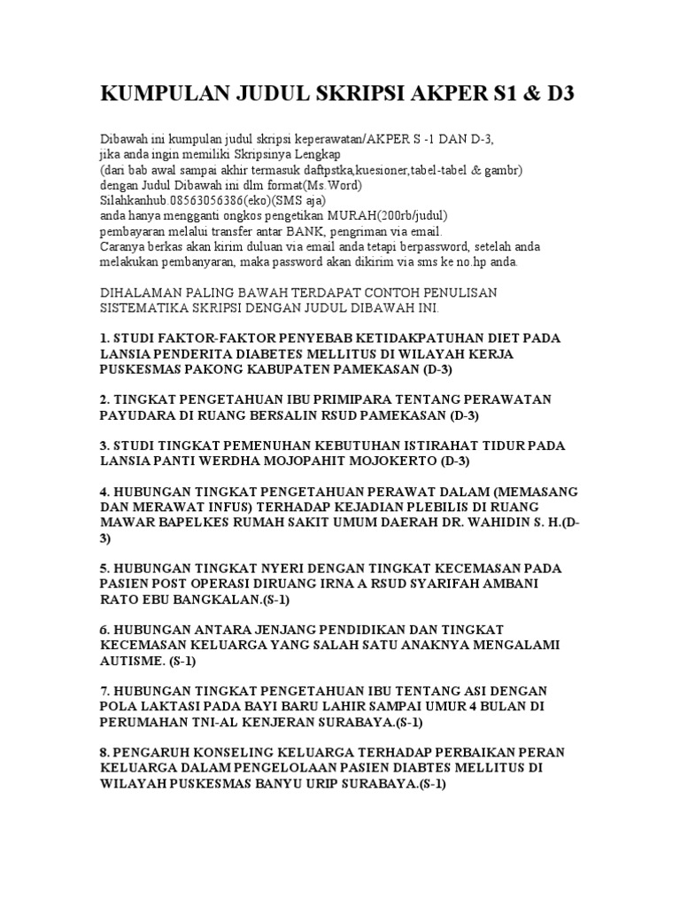 Gan mau nanya tentang judul skripsi keperawatan komunitas. Terhadap tingkat kecemasan. Gudangmakalahblogspotcoid 1 JUDUL SKRIPSI KEPERAWATAN 2 GUDANGMAKALAHBLOGSPOTCOID Bila ingin mendapatkan file-file dari judul-judul di bawah atau judul-judul lainnya silahkan kunjungi gudangmakalahblogspotcoid dan ikuti petunjuk pemesanannya.