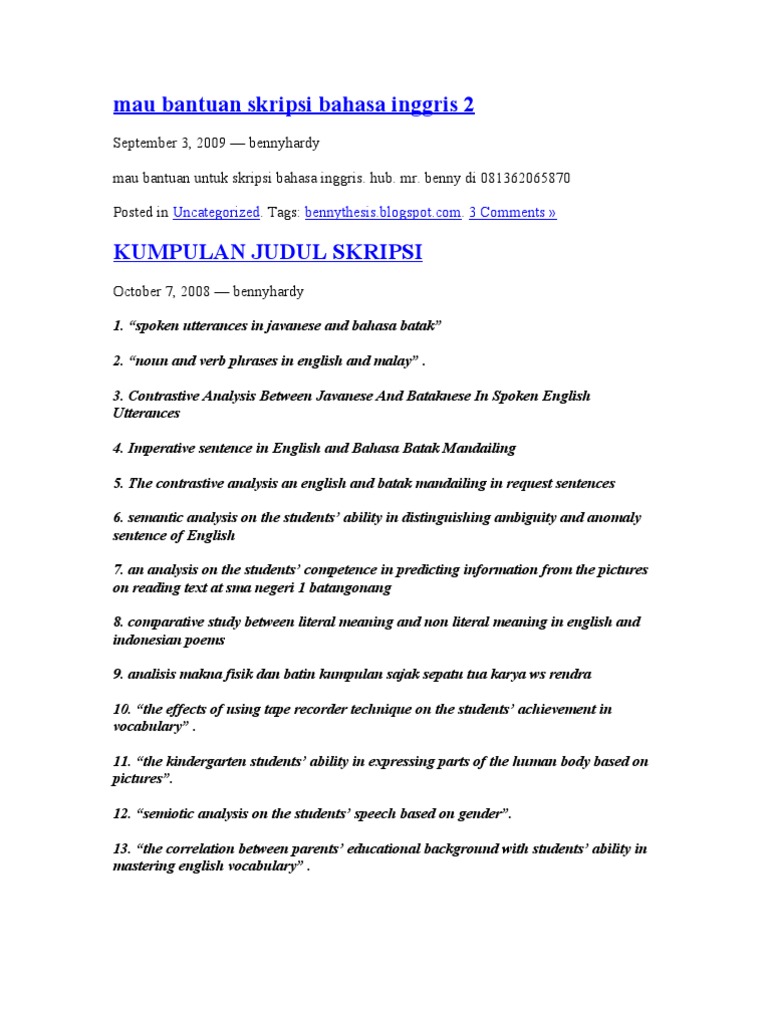 101 Judul Skripsi Bahasa Inggris Mau Bantuan Skripsi Bahasa Inggris Indonesian Language English Language