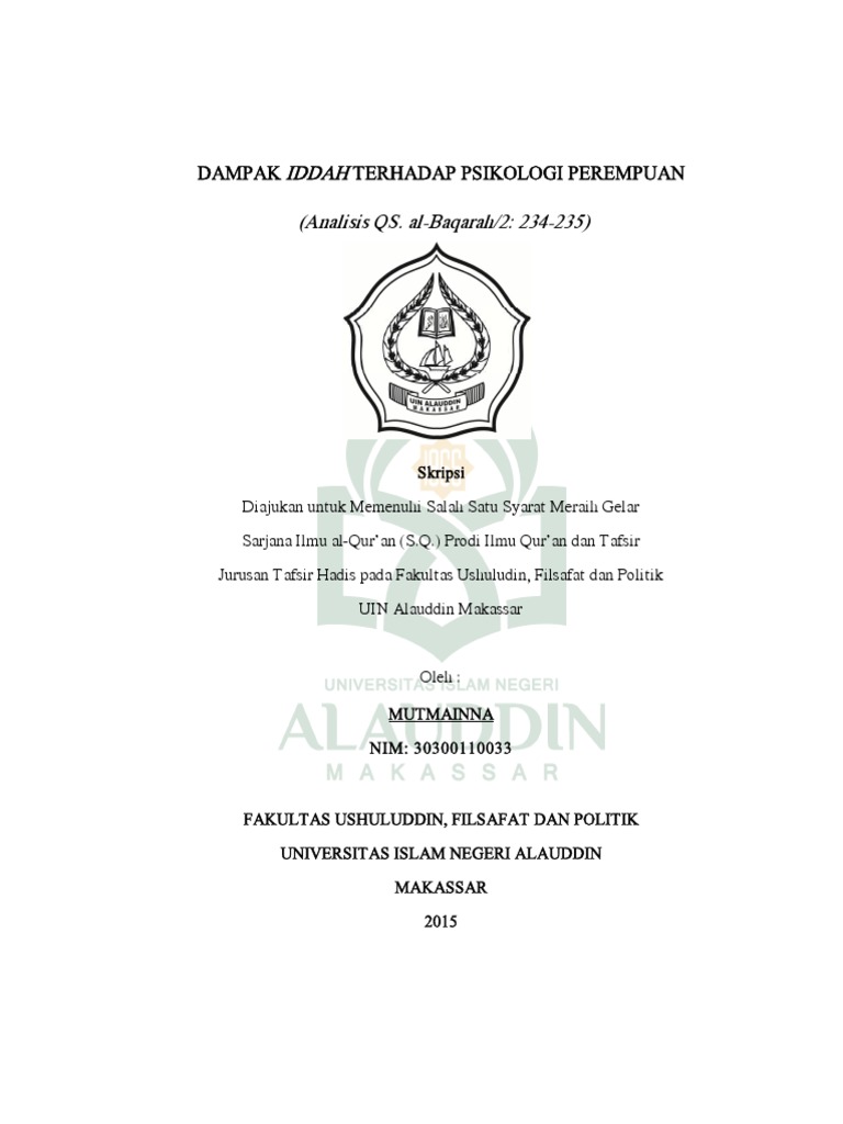 Pada contoh judul di atas sengaja kata Hadis didahulukan sebagai subjek penelitian yang. SKRIPSI Diajukan kepada Fakultas Ushuluddin Jurusan Tafsir dan Hadis Universitas Islam Negeri Sunan Kalijaga Yogyakarta untuk memenuhi Syarat memperoleh Gelar Sarjana Strata Satu dalam Ilmu Tafsir dan Hadis Oleh. Judul penelitian pasti mewakili tujuan dan isi penelitian.