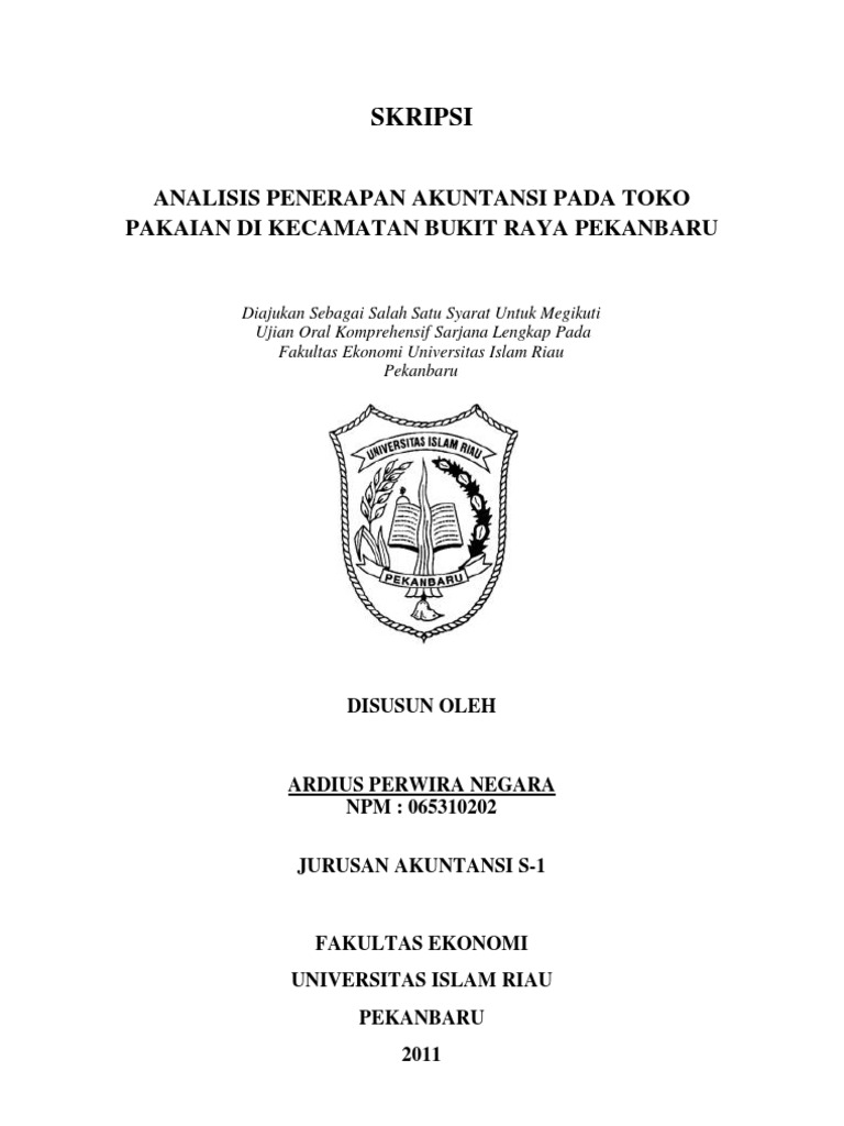 Analisis Penerapan Akuntansi Pada Toko Pakaian Di Kecamatan Bukit Raya Pekanbaru Pdf
